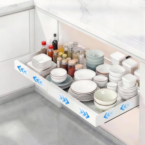 Ribech Organizzatore per Ante Estraibile Bianco – Larghezza Regolabile 32-53 cm, Profondità 42 cm – Cassetto Adesivo per Cucina, Senza Foratura