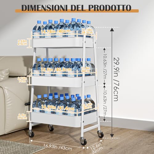 StowBin Carrello in metallo a 3 ripiani, Rollwagen Metall, Metallo Carrellino 3 piani dei Libri Carrello Portaoggetti, con ruote, per soggiorno, bagno, ufficio e camera da letto, Bianco