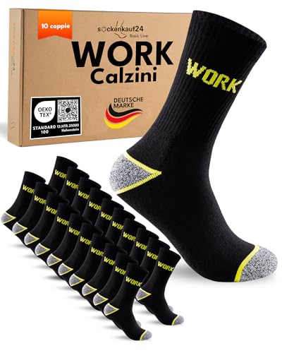 10 Paia Calze da Lavoro Uomo Cotone Rinforzate WORK Socks Nero/Grigio 43-46