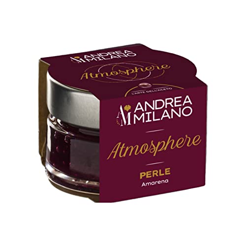 PERLE ALLAMARENA - Queste sfere profumatissime allamarena sono pronte alluso e sono perfette da utilizzare durante cene o aperitivi; sono ideali da accompagnare a piatti a base di carni bianche,ARRICCHISCI OGNI TUO PIATTO - Le perle a base di aceto sono ideali per stupire gli ospiti; con il loro profumo, il loro gusto intenso e la loro forma perfetta riusciranno a conquistare anche il palato più difficile. L e Perle Atmosphere sono prodotte con poche gocce di Aceto Balsamico di Modena IGP e grazie alla maestria della famiglia Milano questo prodotto è trasformato nell’equivalente del Caviale di Modena,ATMOSPHERE - Dallincontro tra gusto e raffinatezza nascono le nuove perle di aceto “Atmosphere”. Si tratta di sfere perfette dal profumo intenso adatte per accompagnare i tuoi piatti preferiti con un tocco di originalità. Puoi dare spazio alla tua fantasia e far spiccare la tua creatività stupendo i tuoi ospiti con ricette straordinarie. Queste perle sono disponibili in diversi gusti: Aceto Balsamico di Modena IGP, Condimento Bianco, Tartufo, Limone e Amarena.,MATERIE PRIME DI QUALITÀ - La scelta attenta delle materie prime, sapientemente selezionate dalle migliori produzioni italiane, consente di ottenere prodotti unici con l’obiettivo di tramandare nel futuro sapore e gusto che altrimenti andrebbero persi. Il connubio tra passato e futuro, tra tradizione e innovazione, è uno degli obiettivi principali che l’ Acetificio Andrea Milano si pone. L’arte non ha età, come i grandi aceti.,ANDREA MILANO - Dal 1889, lobiettivo principale è guardare al futuro senza dimenticare il passato e la tradizione vinicola italiana. Negli anni ’90, acquisendo una storica acetaia di Modena, lacetificio ha potuto allargare la gamma con la produzione dellAceto Balsamico di Modena IGP posizionandosi, ad oggi, come una delle più importanti realtà produttive del settore con tre stabilimenti in Italia ed un export in 65 paesi nel mondo