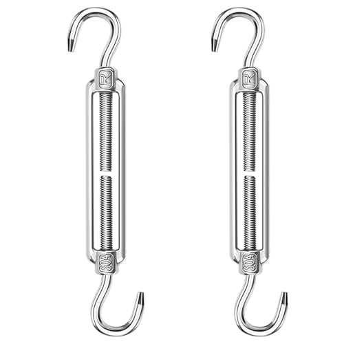 ANOMM M6 Tenditore, 2 Pezzi Tiranti per Filo Acciaio, Tenditore Filo Stendibiancheria 304 Inox con Due Ganci, Accessori per Parasole, Installazione Tende, Cavi di Fissaggio o Corde, Regolabile