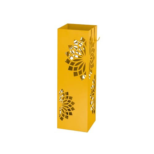 Baroni Home Portaombrelli Design Giallo Moderno Porta Ombrelli in Metallo con Mandala 2 Gancini e Vaschetta Scolapioggia Rimovibile 16x16x49 cm