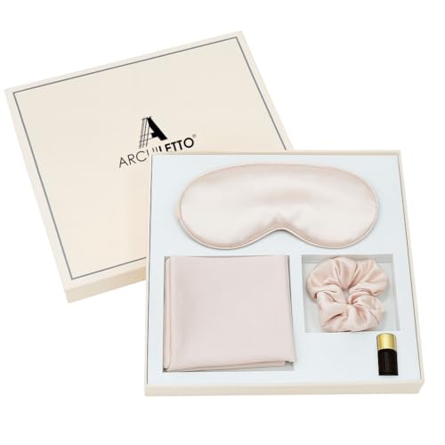 Idea regalo elegante e raffinata – la Box Buonanotte Archiletto è il cofanetto perfetto per Natale, compleanni o momenti speciali.,Federa in seta naturale e fibra di seta riciclata (blend 40%/60%) – morbida e traspirante, protegge i capelli (soprattutto i ricci) e la pelle durante il sonno, riducendo l’effetto crespo e i segni sul viso, previene rughe e non spezza i capelli.,Accessori coordinati per il relax – fermacapelli in seta e mascherina abbinata per un rituale di bellezza e benessere ogni sera.,Olio essenziale profumato – poche gocce per creare un’atmosfera rilassante e favorire il riposo naturale.,Confezione regalo premium – scatola rigida, elegante e pronta da donare. Disponibile in 4 colori: nero, rosa chiaro, grigio argento e blu notte.,Contenuto confezione: n°1 federa 50x80 in blend di seta + n°1 fermacapelli in blend di seta + n°1 mascherina notte in blend di seta + n°1 olio essenziale rilassante 5ml