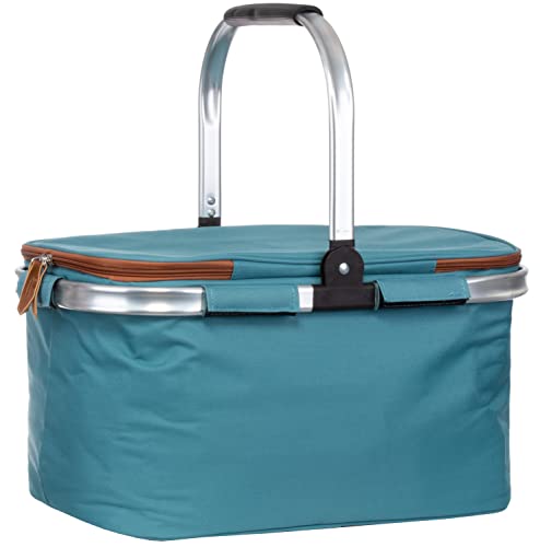 Brandsseller Cestino per la Spesa 26 Litri Cestino refrigerante pieghevole con Coperchio Borsa per la Spesa Cestino da Picnic con cerniera Maniglia di Trasporto imbottita in Allluminio - Turchese