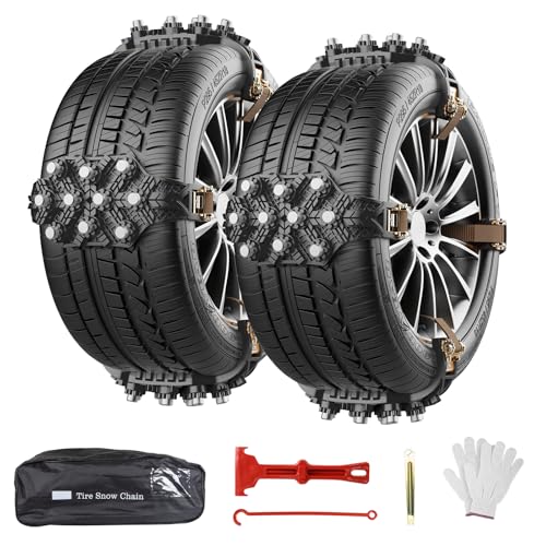 Catene da neve Oziral per pneumatici 165-255 - 8 pezzi catene antiscivolo regolabili con sgancio rapido - Include guanti e pala - per auto, furgoni, SUV su strade innevate