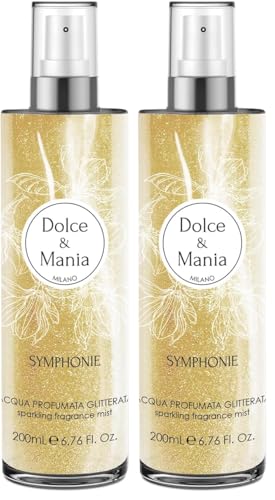 dDOLCE & MANIA | Symphonie Acqua Profumata Glitterata 200ml - Acqua Profumata con Glitter, Fragranza Elegante e Brillante per un Tocco di Lusso (Confezione da 2)