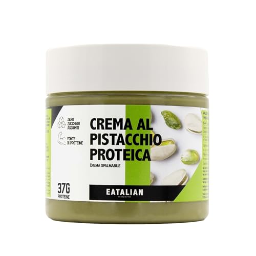 EATALIAN by AMZ BETTER Crema Proteica al Pistacchio, Deliziosa Crema Spalmabile dal Gusto Dolce e Unico, con 37 g di Proteine, Ideale su Pane, Ottima per Dubai Chocolate, 200 gr Made in Italy