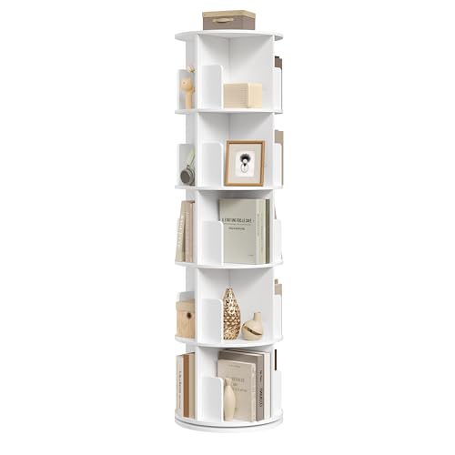 EUGAD Libreria Girevole a 5 Livelli, Scaffale Angolare Rotante con 20 Scomparti, Organizer Autoportante per Soggiorno, Camera e Ufficio, in Legno Bianco