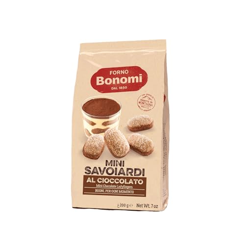 Forno Bonomi - Mini Savoiardi al Cioccolato - 200 g - Biscotti Savoiardi al Cacao Ideali per Dessert Monoporzione, Colazione o come Gustoso Snack Dolce