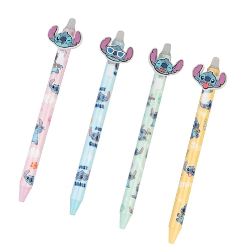 Grupo Erik Set Penne Stitch Cancellabili Blu - Set Cancelleria 4 Penne Gel Blu a Scatto con Gomma | Gadget Stitch: Regalo Stitch Bambina