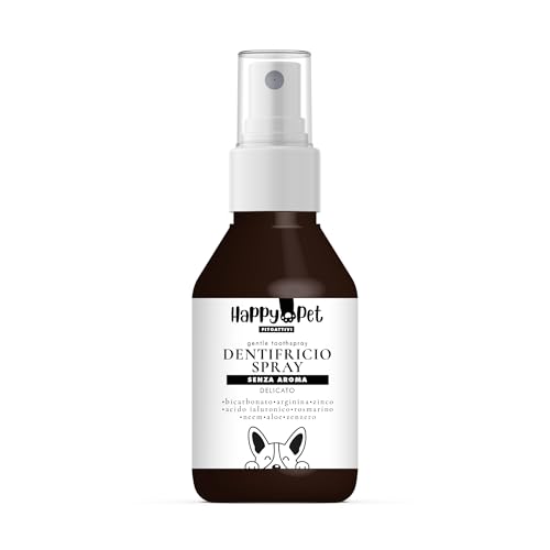 Happy Pet Dentifricio Spray per Cani 150ml – Naturale Antiplacca e Antitartaro – Alito Fresco – Senza Spazzolino – Disponibile in 3 Aromi: Neutro, Menta, Pesca (150ML, Senza Aroma)