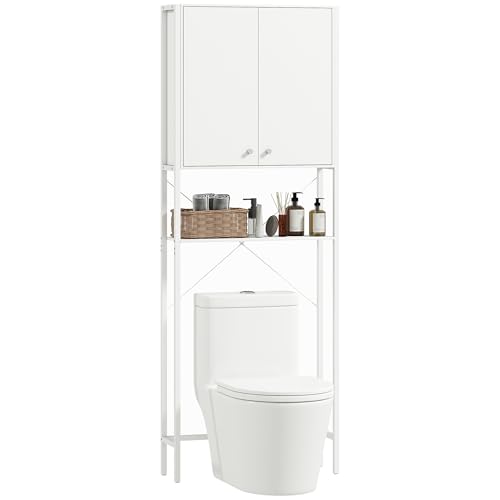 HOMCOM Mobile Bagno Sopra WC con Armadietto e Ripiano Aperto, Mobile Sopra Lavatrice Salvaspazio con Gambe in Metallo, per Bagno e Lavanderia, 64x20x180 cm, Bianco
