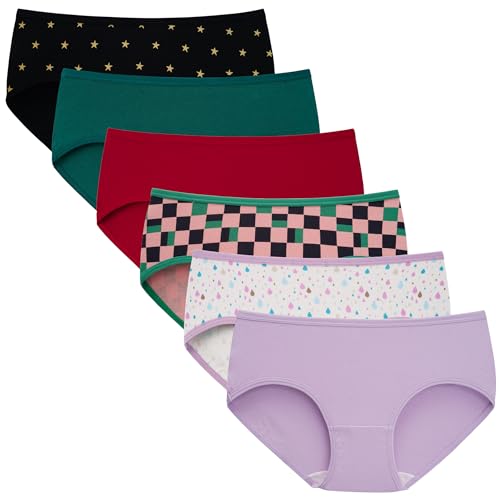 INNERSY Mutande Ragazza 10-16 Anni Cotone Slip Adolescenti Intimo Comoda Vita Midi Pacco da 6 (12 Anni, 3 Stampe, Rosso, Verde, Viola)