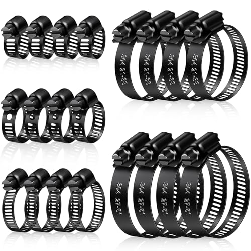 Specifiche: le fascette stringitubo nere riceveranno 5 diverse dimensioni: 4 pezzi da 6 a 12 mm, 4 pezzi da 13 a 19 mm, 4 pezzi da 16 a 25 mm, 4 pezzi da 21 a 38 mm, 4 pezzi da 27 a 51 mm, fascette sufficienti per la sostituzione quotidiana,Forte forza di serraggio: allentare la vite con un cacciavite, tirare il bullone attraverso la testa del tubo per adattarlo alla posizione e alle dimensioni corrette, stringere la vite della cinghia del tubo e fissare il tubo in posizione,Materiale: acciaio inossidabile 304 morsetto regolabile resistenza alla corrosione, resistenza alle alte temperature, buona permeabilità e lunga durata,Design regolabile: flessibilità delle fascette stringitubo nere in acciaio inox, morsetti per tubi con design cavo e struttura di bloccaggio, che blocca saldamente il tubo senza allentare o scivolare per prevenire efficacemente perdite,Ampia applicazione: le fascette nere possono essere utilizzate per il fissaggio di vari tubi come tubo di scarico, tubi di ventilazione, vari tubi dellacqua e tubi di trasportatore. Adatto per settori quali automobili, meccanici, industriali e residenziali