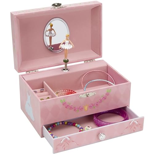 Jewelkeeper - Carillon Rosa Musicale, Porta Gioielli per Bambina con Ballerina Cassetto Estraibile, Custodia Gioielli - Melodia Lago dei Cigni, Cofanetto Portagioie Ballerina per Bambine Elegante