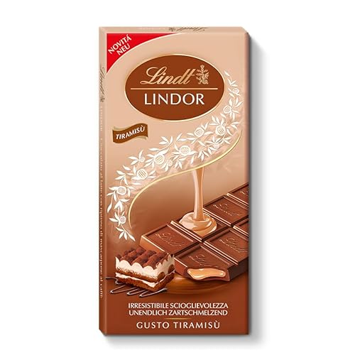 Lindt LINDOR Tavoletta di Cioccolato Al Latte con Ripieno gusto Tiramisù, Formato 100g