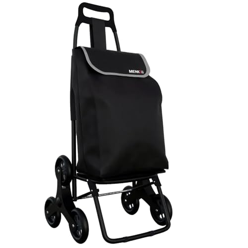 MENKËLL - Trolley carrelino per la spesa con 6 Ruote Girevoli Saliscale, Trolley Portaspesa con chiusura a strappo, borsa Rimovibile per trasporto acqua, adatto a persone anziane (Nero)