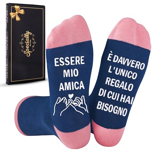 regalo per amicaQuesto calzino dice: essere mio amica,è davvero lunico regalo di cui hai bisogno. Questa frase è molto interessante ed è una buona scelta regalarla alla tua migliore amica.,Anti scivoloI nostri calzini sono antiscivolo e hanno scritte punteggiate di colla sulla pianta dei piedi, così puoi indossarli mentre cammini sul pavimento in tutta tranquillità.,Comodo e traspiranteI calzini sono realizzati per l80% in cotone, il 15% in acrilico e il 5% in spandex, il che li rende morbidi, confortevoli e traspiranti.,Vestibilità elasticaI nostri calzini sono elastici, quindi si adattano bene ai tuoi piedi. Questo paio di calzini è adatto a persone con taglie europee 39-42.,Adatto per uso domestico ed esternoI calzini sono dai colori vivaci e dal design creativo, con testi diversi sulla suola dei due calzini. Può essere indossato a casa, per uscire o in viaggio.