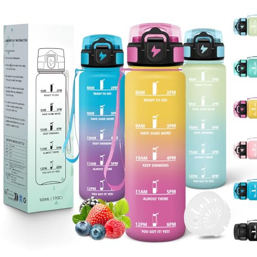 Motswedi Borraccia Bambini, 500ml a Prova di Perdite, Borraccia Motivazionale, Riutilizzabile, Borracce, Senza BPA, Bottiglia Acqua, Borracce Bambini, per Scuola, Palestra, Yoga, Sport, Giallo Rosa