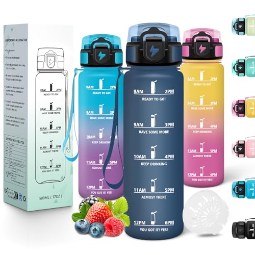Motswedi Borraccia Bambini, 500ml a Prova di Perdite, Borraccia Motivazionale, Riutilizzabile, Borracce, Senza BPA, Bottiglia Acqua, Borracce Bambini, per Scuola, Palestra, Yoga, Sport, Blu Scuro