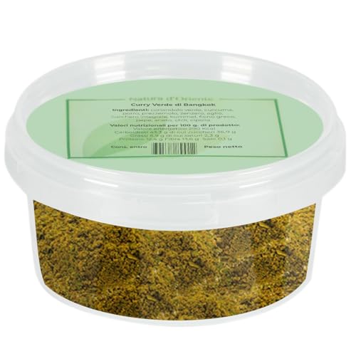 Il curry verde Thai è in realtà una miscela di spezie particolarmente diffusa in Medio Oriente, soprattutto in Thailandia. Se la cucina indiana è dominata dal colore e dal sentore di zafferano del curry giallo, quella thailandese vanta numerose ricette insaporite dal “focoso” curry rosso e dal profumatissimo curry verde, meno noto nel mondo occidentale, tanto gustoso, quanto sfizioso.,Di colore verde intenso è una prelibatezza ricca di sapore e di profumo, di odore intenso e fruttato, utilizzato per stufati con carne o pesce, zuppe vegetariane o per piatti tipicamente vegani.,Il curry verde Thai può essere preparato con piatti a base di carne, pesce, riso.,Il curry verde Thai è ottimo nella preparazione di diversi piatti se diluito insieme al latte di cocco.,IMBALLAGGIO ERMETICO: Confezionato in barattolo PP05 richiudibile che garantisce la durata del prodotto e la conservazione del suo aroma.,PERCHE’ SCEGLIERE NATURA D’ORIENTE? La nostra azienda è ormai indirizzata ad un solo scopo: essere sul mercato un punto di riferimento per tutti coloro che amano le fragranze del tè, degli infusi, della frutta secca e disidratata, degli aromi e dei profumi delle spezie, oltre a tante altre specialità che man mano scegliamo ed inseriamo, tenendo sempre come primo obiettivo, la cura della QUALITA’.