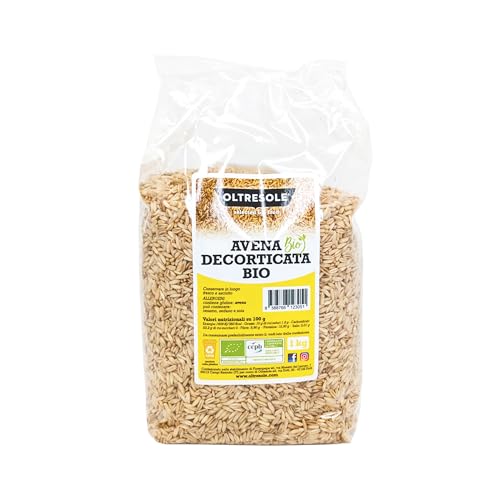 Oltresole, Avena Decorticata Italiana Biologica 1 Kg, Cereale Bio in Chicchi, Ricco di Fibre e Proteine, Ideale per un'Alimentazione Sana e Bilanciata, Confezione Ideale per Famiglie