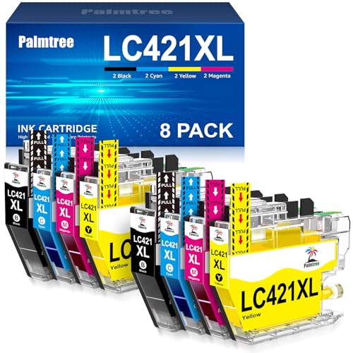 Palmtree Cartucce LC421XL Compatibili per Brother LC421XL LC 421 XL per Brother DCPJ1050DW MFCJ1010DW DCP J1050DW MFC J1010DW DCP-J1140DW DCP-J1800DW DCP-J1050DW MFC-J1010DW (8-Pack)