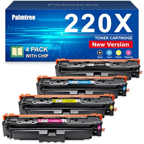 Palmtree 220X 220A Cartucce Toner Compatibile con HP 220X 220A per HP Color LaserJet Pro MFP 4302dw 4302fdw 4202dw 4202dn 4302fdn W2200X W2201X W2202X W2203X( Nero Ciano Magenta Giallo,con Chip )