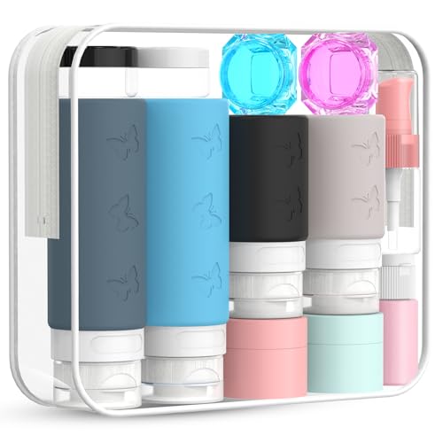 Design Anti-Perdita Aggiornato: Le nostre contenitori da viaggio per liquidi sono progettate con un triplo coperchio a prova di perdite per garantire che non si rovescino o perdano durante luso. La custodia da viaggio trasparente con cerniera inclusa aiuta a riporre il kit da viaggio per mantenere il bagaglio pulito e ordinato, evitando che eventuali fuoriuscite rovinino i vostri vestiti mentre siete in viaggio.,Materiale in Silicone Morbido: Realizzati in silicone morbido, le bottiglie da viaggio per articoli da toilette sono inodori, resistenti ai colori e riutilizzabili. Viene fornito con imbuto e spazzola che aiutano a riempire e pulire facilmente le bottiglie.,Design a Ampia Apertura: Il flaconi da viaggio con grande apertura è facile da riempire e da pulire, è una buona scelta per shampoo, balsamo, lavaggio del corpo, lozione e altri articoli da toeletta. Offriamo anche strumenti di riempimento che ti consentono di riempire facilmente le tue bottiglie.,Accessori Viaggio Utili: queste bottiglie da viaggio vuote sono perfetti per lozioni, creme, struccanti, detergenti, cosmetici, shampoo, balsami, lavaggi per il corpo, collutori, soluzioni di sapone, ecc. Possono essere utilizzati anche per conservare collane, orecchini, anelli e altri piccoli gioielli. Sarebbe una necessità per vacanze, viaggi daffari, aereo, spiaggia, palestra, campeggio, picnic, ecc.,Contenitori da Viaggio Portatili: 26 pezzi in totale. include 2 bottiglie da viaggio 60 ml, 2 bottiglie da viaggio 100 ml, 1 flaconi spray, 1 bottiglia di lozione da 10 ml, 4 barattoli per creme, 2 vasetti per gioielli, 2 custodie per spazzolini, 4 cucchiai, 2 imbuto, 1 contagocce, 3 piccoli attrezzi, 2 etichette e 1 borsa trasparente per il trasporto. Leggeri e flessibili, sono perfetti per viaggi, campeggio, palestra, nuoto e uso quotidiano.