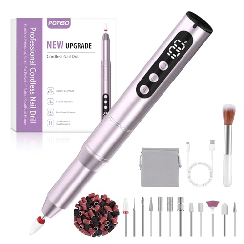 POFIBO Fresa per Unghie Professionale – 12 in 1 Lima Elettrica per Unghie 35000 RPM con Display LCD, 5 Velocità Regolabili, Ricaricabile per Gel e Acrilico, Manicure e Pedicure (Viola)