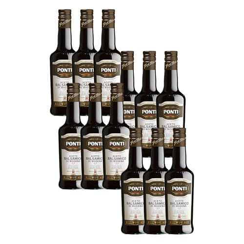 Ponti, Aceto Balsamico Modena I.G.P., Proveniente da Uve di 7 Vitigni Selezionati e Pregiato Aceto di Vino, Ideale per Insaporire Carni Rosse Crude e Cotte, 100% Made in Italy, 12 Bottiglie da 500 ml