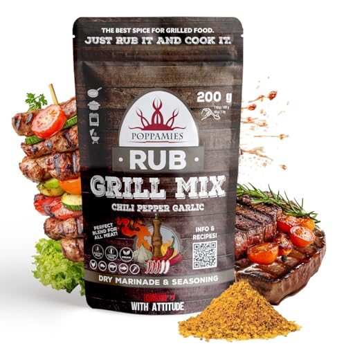 Poppamies Grill Mix BBQ Rub - Condimento per Barbecue 100% Naturale - Mix di Spezie al Peperoncino e Aglio - Perfetto per cibi alla griglia! Manzo Maiale Pesce Verdure Pollo - Confezione Grande (200g)