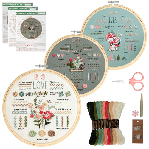 VINATO Kit Ricamo Principianti, Completo con 30 Punti, Telaio Bambù e Guide, Set Ricamo per Hobby Creativi, Pratica e Regalo Ricercato, Starter Kit per Adulti