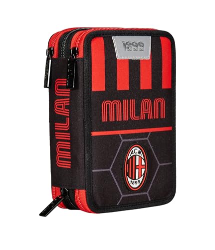 Seven Astuccio Scuola 3 Scomparti, A.C. MILAN Calcio - PATH OF VICTORY, Rosso Nero - Portapenne Multi Scomparto Con Matite, Penne e Colori, Accessori Zaino, Zaino Scuola - Astuccio Bambino Ragazzo