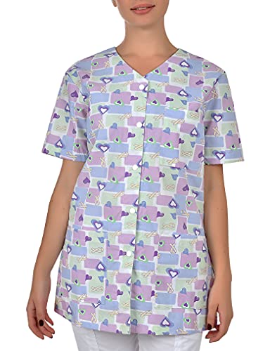 B-well Carina Camice Medico Donna Casacca Infermiere con i Bottoni a Pressione Divisa Infermiere Donna a Manica Corta Scollo V Cuore Blu. XS
