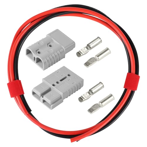 efuturetime 2 PZ. Connettore Anderson 50A con cavo elettrico da 60 cm AWG-10, set di connettori per batteria ad alta corrente per auto, roulotte, barche, sistemi solari, grigio