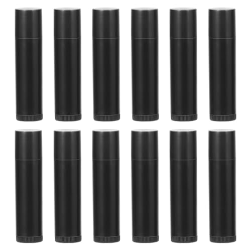 YAZWUR 12 pezzi Tubi per rossetto riutilizzabili in plastica, vuoti con tappo, ideali per balsami fai-da-te, burro cacao, strumenti di bellezza, Stick, Gloss Contenitori, Lip Balsamo (5g) (Nero)