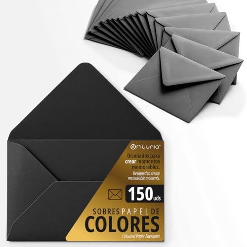 Buste di carta, buste piccole colorate, ideali per regali, lettere, biglietti, vari colori, dimensioni 75x120 mm, progettate per sorprendere e creare momenti speciali - Ofituria (nero, 150 pezzi)