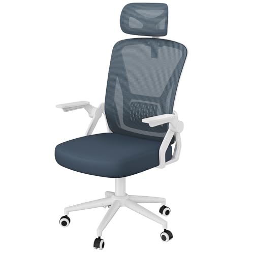 naspaluro Sedia da Ufficio,Con Braccioli Ribaltabili a 90°,Sedie Scrivania Ergonomica Lombare, Con Poggiatesta, Rivestimento in Rete Traspirante, Sedia Girevole a 360° Con Funzione Swing,Grigio Scuro
