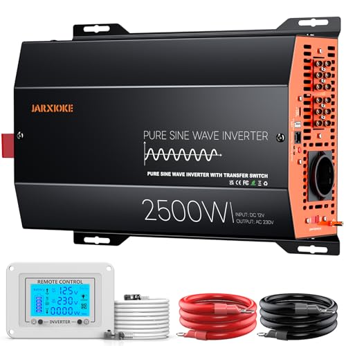 Inverter da 2500 W, 12 V a 230 V, sinus puro con interruttore di trasferimento con terminale di uscita/uscita e ingresso, presa AC/telecomando LCD/inverter per camper, esterni, camion, campeggio