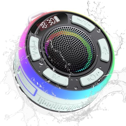 Cassa Bluetooth Doccia, Cassa Bluetooth Portatile IP7 Impermeabile con Ventosa, 360°Associazione Stereo Altoparlante Bluetooth con Luce LED Colorate, Speaker Bluetooth per Doccia/Esterno, Ciano Chiaro