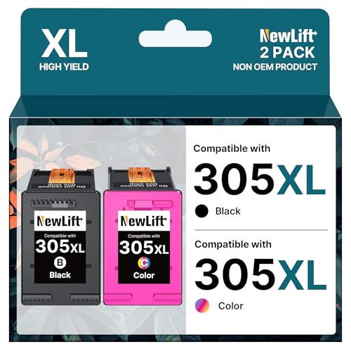 NewLift 305 305 XL Cartuccia d'inchiostro Compatibili con HP 305XL per Cartucce HP Deskjet 2820e 4220e 2810e 2720e 2800e, per Envy 6000 6020e 6032e 6420e 6032 6020 (Nero, Colore,2-pack)