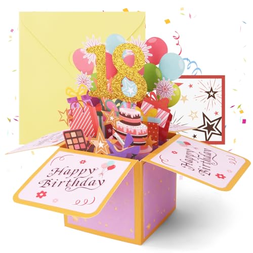 OFFCUP 18 Anni Biglietto Auguri Compleanno 3D Biglietti Auguri Regalo Divertente Pop Up Biglietti di Compleanno con Busta e Carta Biglietto di Auguri per Uomo Donna Famiglia Amica Festa