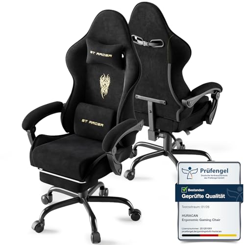Huracan Sedia Gaming con funzione di massaggio, Poltrona da Gaming con Poggiapiedi e Poggiatesta e cuscino lombare, braccioli combinati, Ergonomica Sedia da Gamer per YouTube Livestreaming Xbox, nero