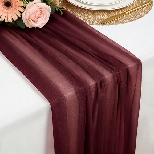 Runner de Tavolo Rosso Bordeaux in Chiffon, 77 X 300 CM Morbido e Confortevole Runner de Tavolo Moderno Tulle per Matrimoni, Battesimi, Baby Shower, Addio Al Nubilato, Decorazione da Tavolo in Cucina