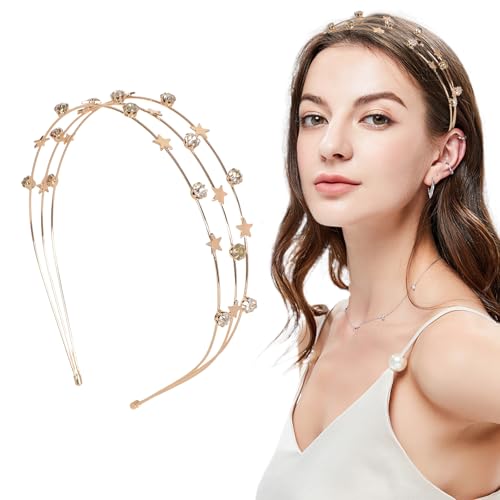 Cerchietto per capelli a forma di stella, stelle cerchietti strass, Fasce per Capelli a Forma di Stella, 3 Livelli Cerchietto con Stella di Strass Lucente Metallo Cerchietto Capelli, per Donne Ragazze