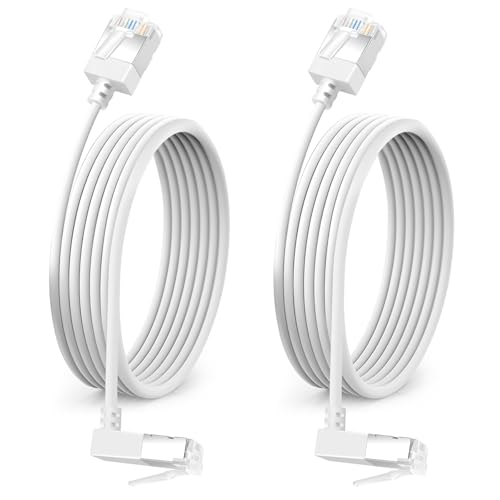 Dutevolns Cavo Ethernet Ultra Sottile Cat 6 con Angolo 90° verso il Basso 3m, 2 Pezzi Flessibile e Compatto RJ45 Cat 6a Cavo LAN Gigabit per PC, Router, Windows (Bianco)