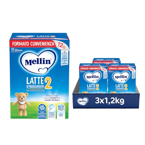 MELLIN 2 - Latte di Proseguimento in Polvere per Neonati dal 6° Mese Compiuto al 12° - Confezione da 3600 grammi (3 x 1200g)