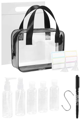 MOCOCITO Beauty Case da Viaggio Trasparente 11 IN 1 Kit Liquidi 2.2L,Buste per Liquidi Aereo 5 Pezzi Contenitori Flaconi da Viaggio 100 ml Set per Shampoo Bagno,Borsa da Toilette Trousse con Manico