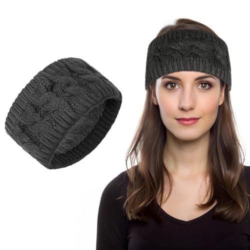 LOPHE Turbante Fascia da Donna, Fascia Invernale Lavorata a Maglia più Velluto, Fascia Capelli Caldo Extra Large, Antivento, Protezione per le Orecchie, Regali per Donne, Ragazza(grigio scuro)